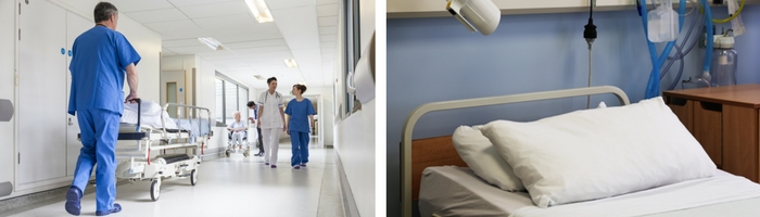 Cymru yn Adran Damweiniau ac Achosion Brys Wrecsam/Ysbyty Wrecsam Maelor. Mae
